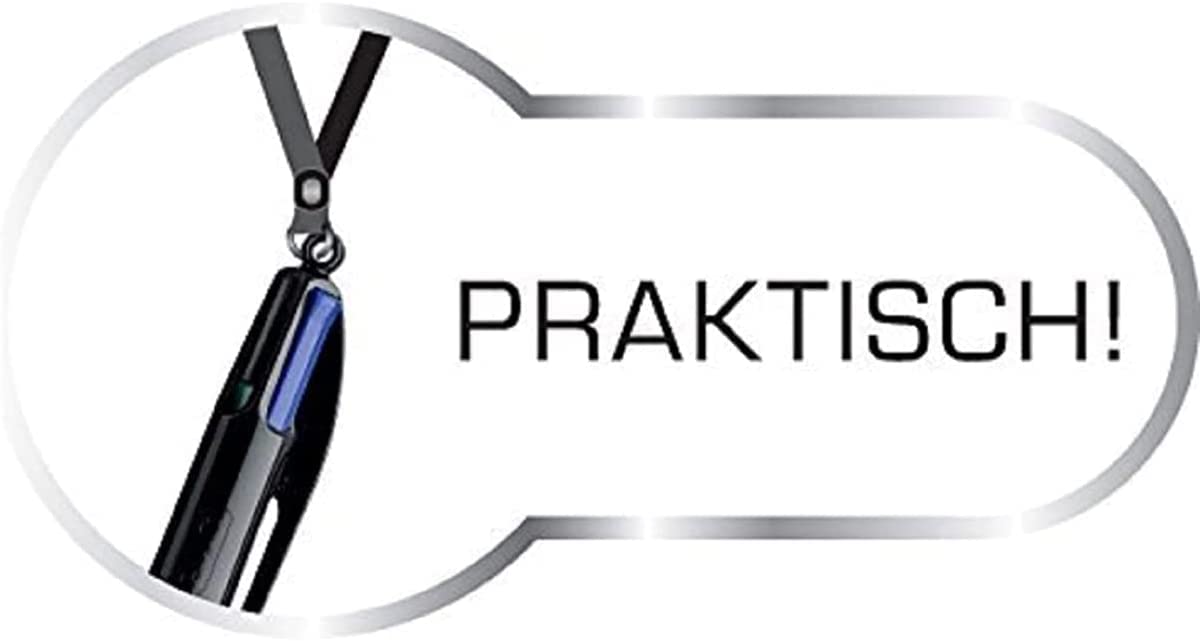 - A timeless design featuring a round blue and white barrel, a side clip, and the signature clicking buttons