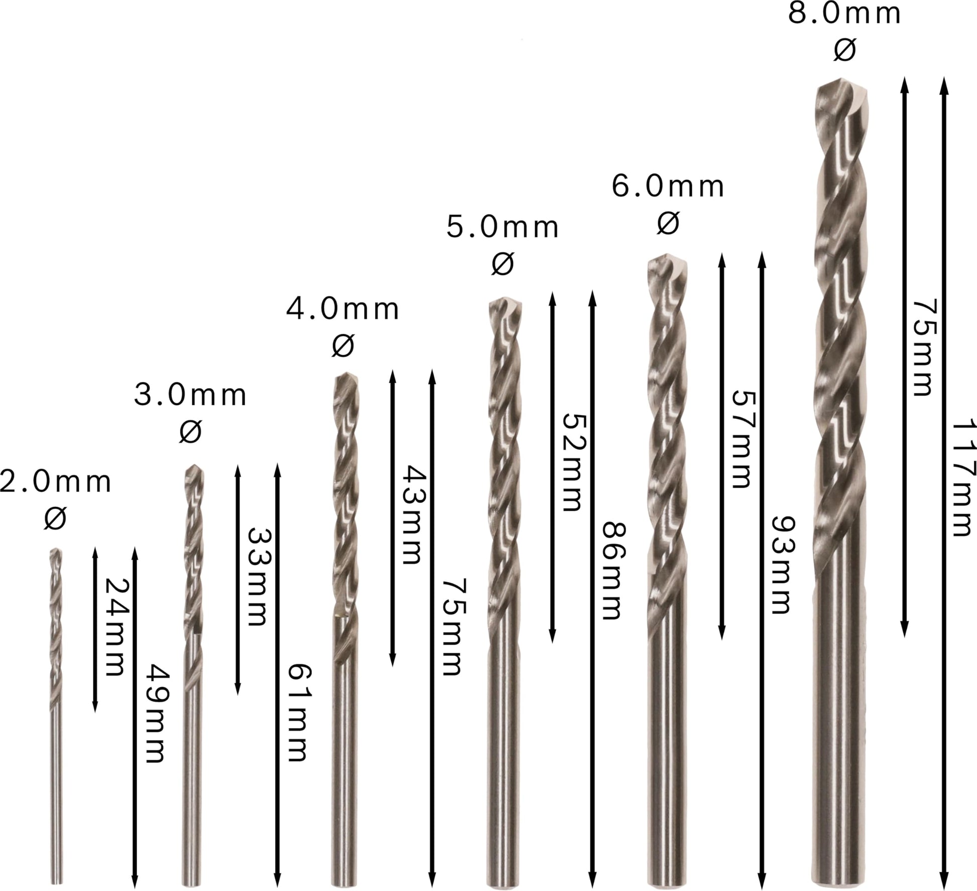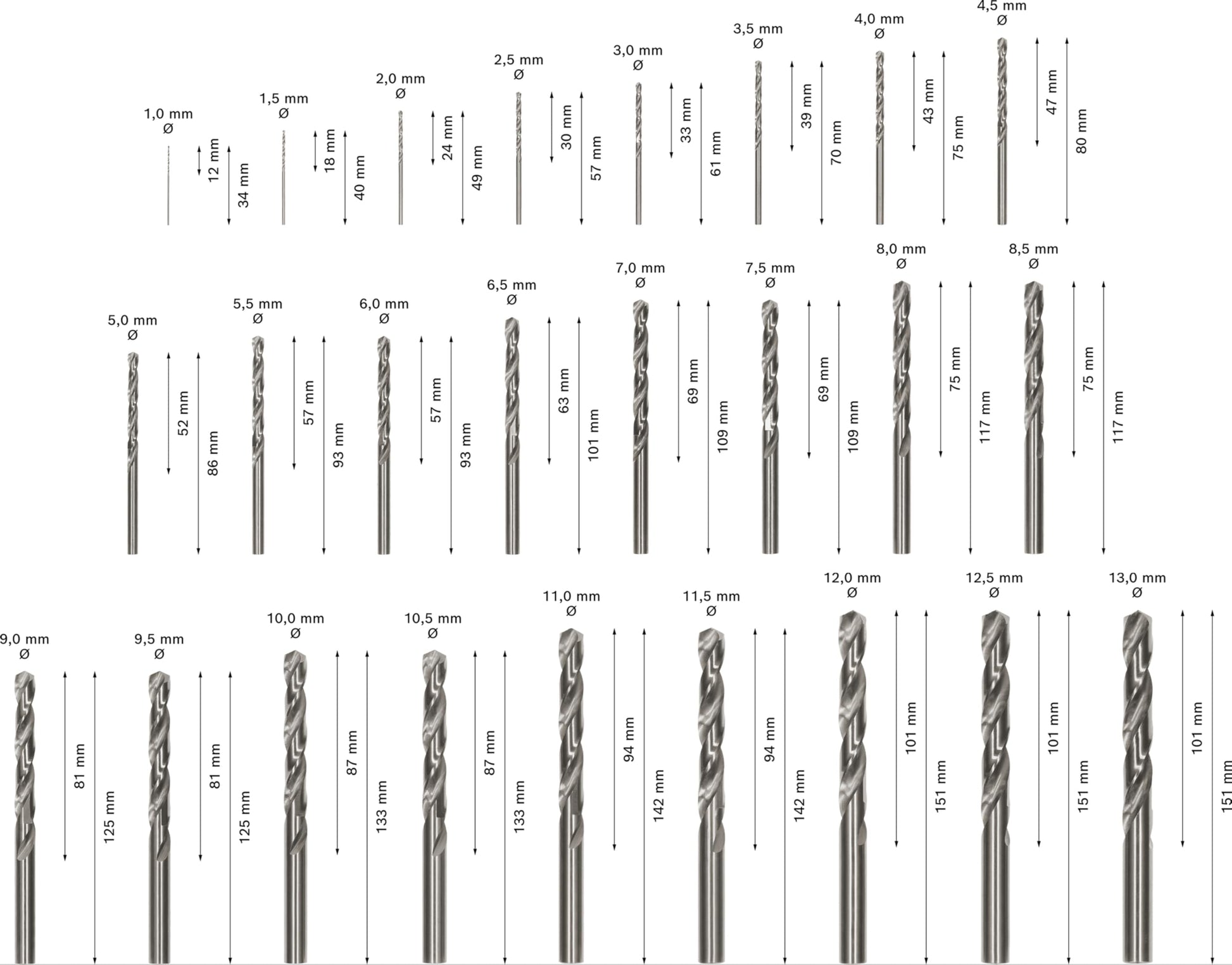 - Scope of delivery: 25 x Bosch Professional HSS-G Twist Drill Bits for steel - Ø 1/1.5/2/2.5/3/3.5/4/4.5/5/5.5/6/6.5/7/7.5/8/8.5/9/9.5/10/10.5/11/11.5/12/12.5/13 mm
