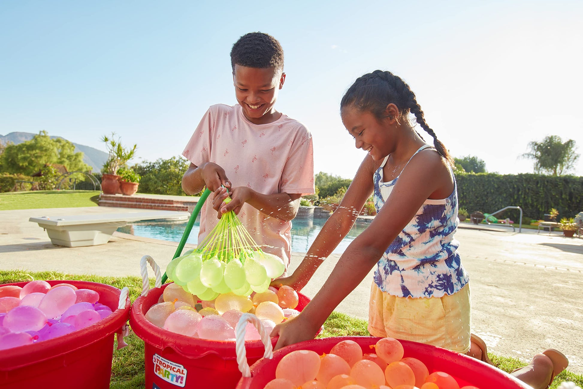 - Quick Fill: Splash into Summer with Bunch O Balloons. Fill and Tie 100 balloons in 60 seconds to start a Tropical Party in minutes! Simply attach the stem to a hose and make hundreds of water balloons in seconds.