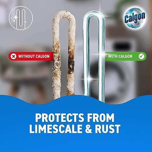 - Calgon prevents limescale & rust build-up in your washing machine to protect the heating element, pipes and drum of the machine.