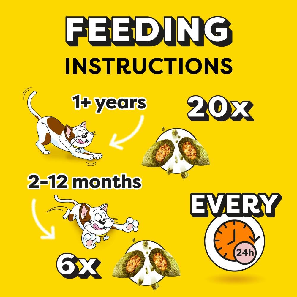 - Snack pockets are bursting with delicious salmon taste and pack a satisfying crunch - At just 2 calories per treat, your cat can enjoy up to 20 pieces per day or 6 pieces per day for your kitten