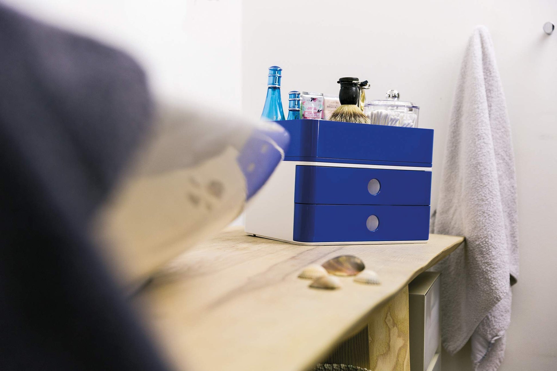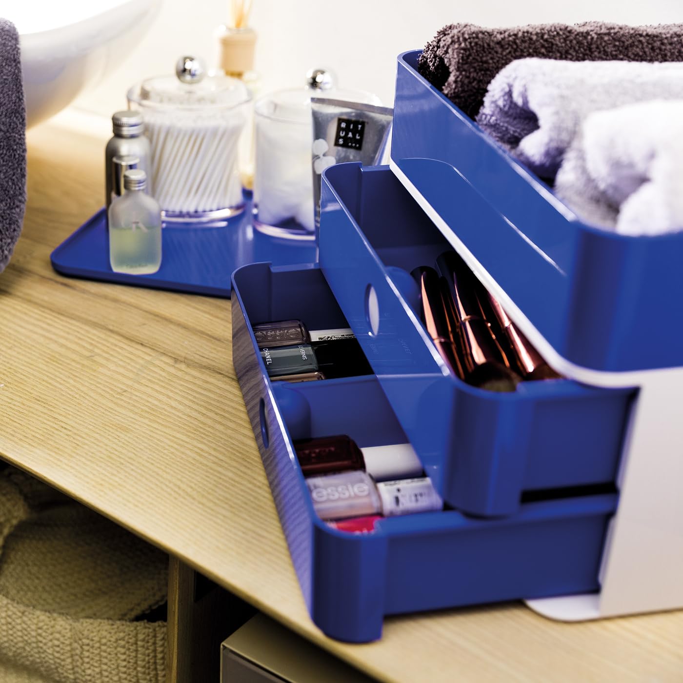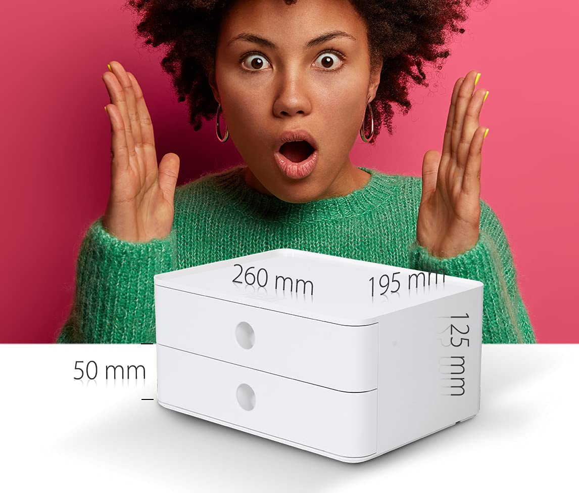 - Box contents: 1 x HAN 1100-14, SMART-BOX PLUS ALLISON, design drawer box with 2 drawers and utensil box, external dimensions (W x D x H): 260 x 195 x 190 mm. Internal dimensions of the drawer: 235 x 160-180 x 50 mm Case colour: snow white. Drawer colour: royal blue. Organiser colour: royal blue/original Han branded product. Design protected. Made in Germany.