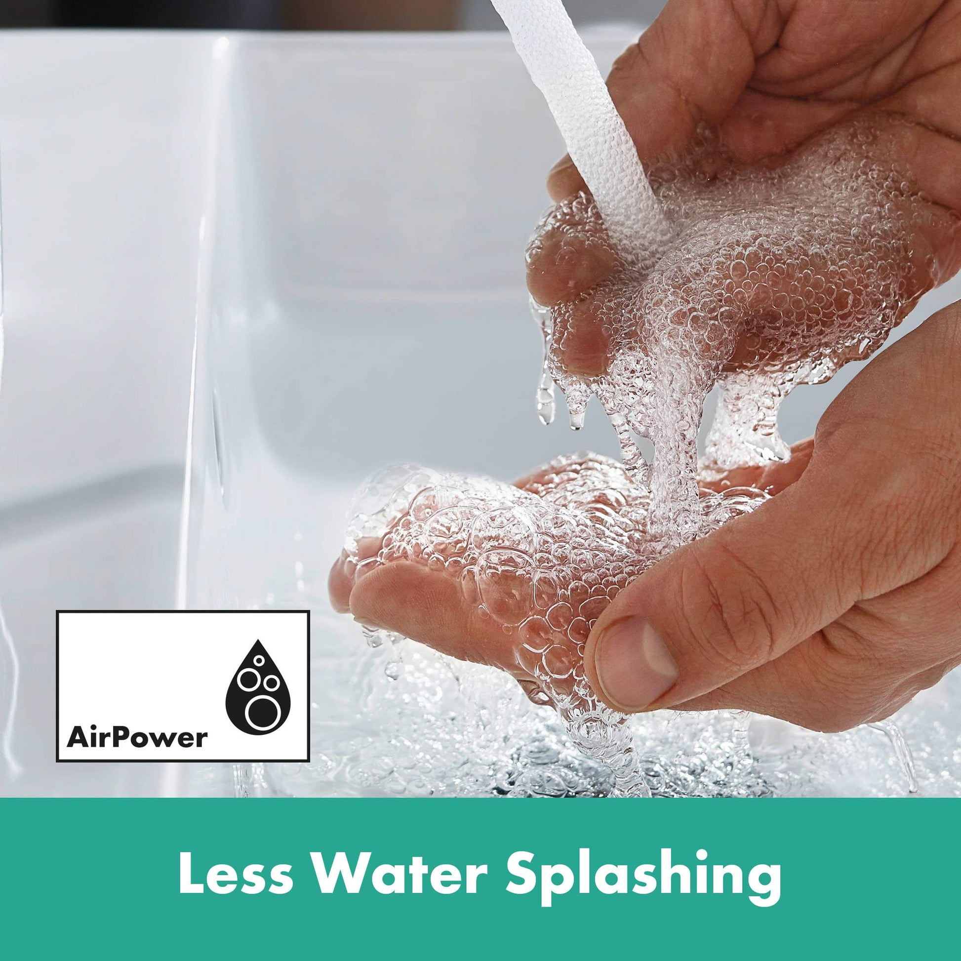 - This tap enriches the water with air for a full water jet with less splash (AirPower)