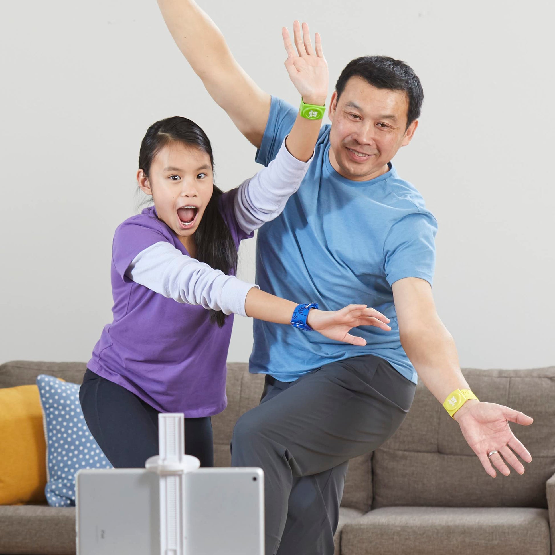 - 8 COLOURFUL BANDS AND DEVICE STAND: includes two sets of four stretchy, one-size-fits-all Twister Air bands for ankles and wrists, plus an adjustable stand that holds a smart device during play