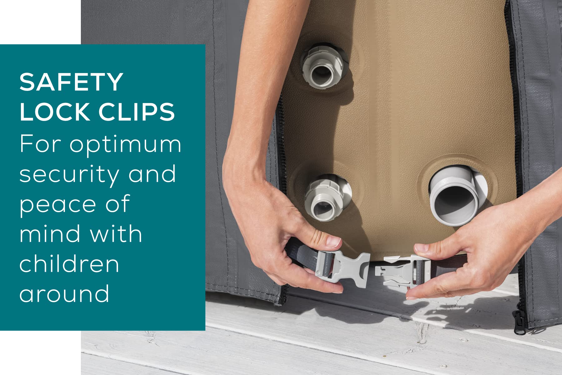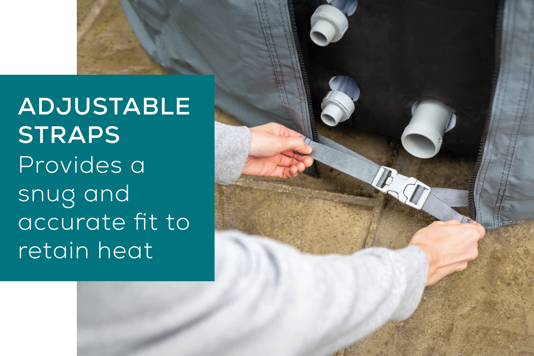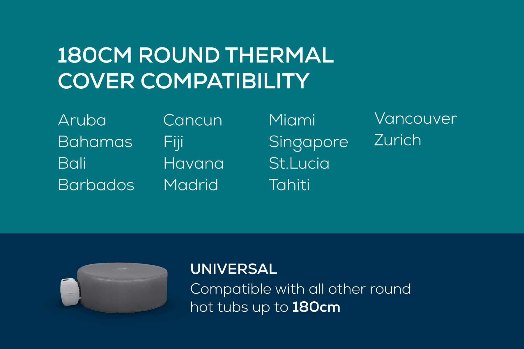 - UNIVERSAL FIT: Compatible with all round inflatable hot tubs up to 196cm in diameter, the hot tub thermal cover is easy to put on and take off. Featuring safety lock clips and adjustable straps, you can secure your cover to keep it in place in all weather conditions and provides a snug fit, essential for heat retention