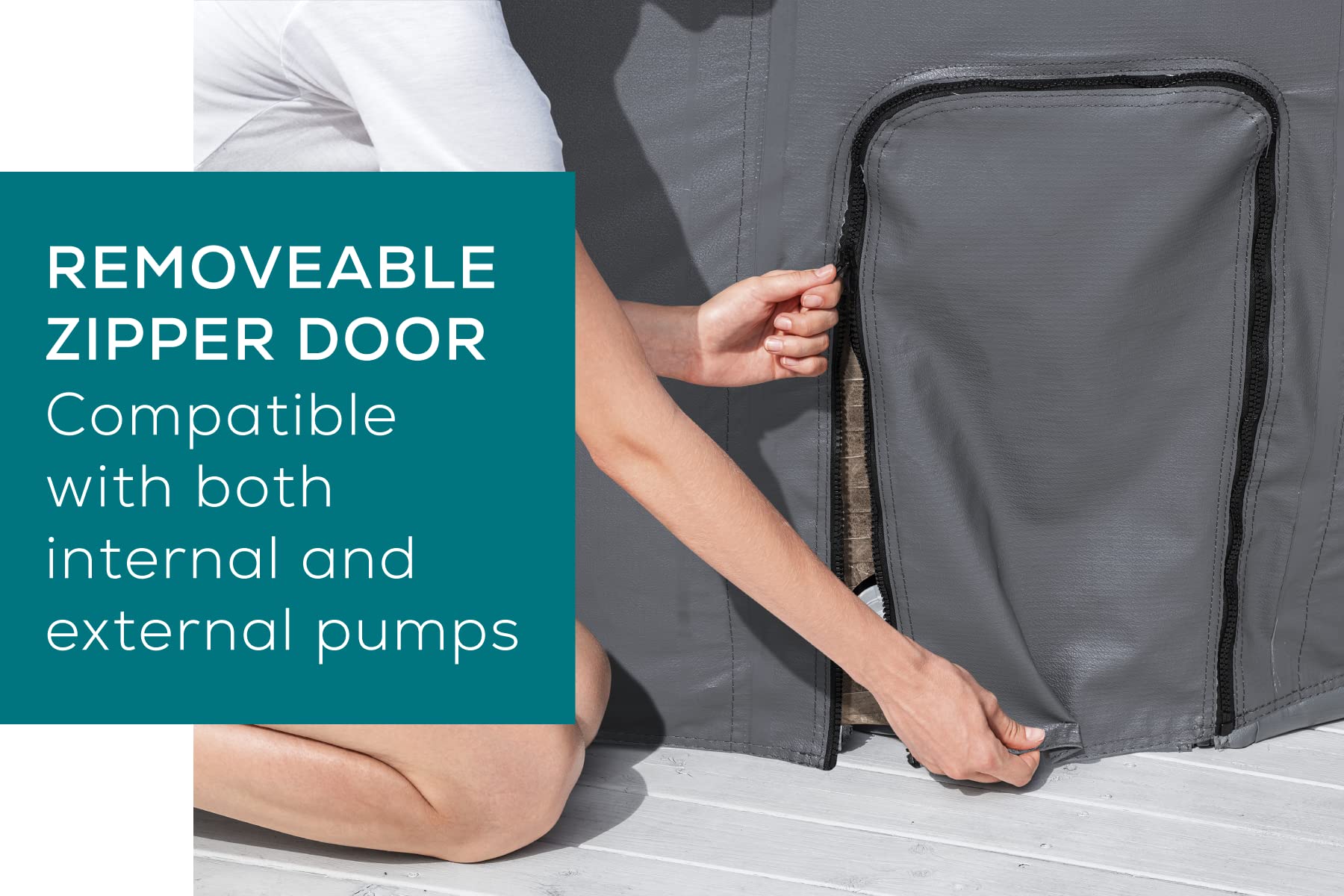 - REMOVEABLE ZIPPER DOOR: The easily removable section of the thermal cover means the hot tub cover can be used on hot tubs with or without external pumps