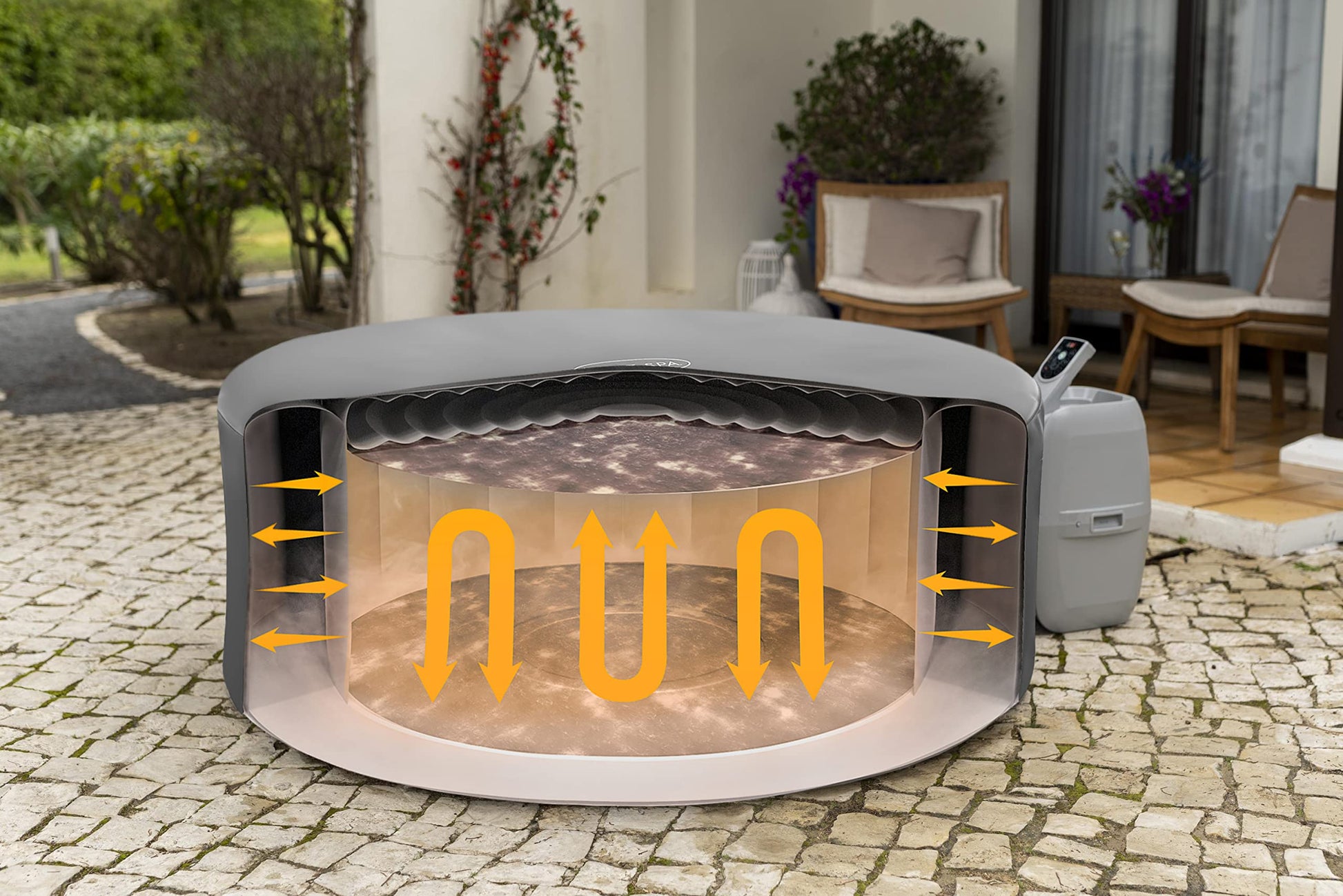 - IMPROVE INSULATION: This insulating hot tub cover offers a double layer of cotton thermal insulation, making your inflatable hot tub up to 40 percent more energy efficient. The Lay-Z-Spa thermal cover improves heat retention and allows you to heat the water much quicker
