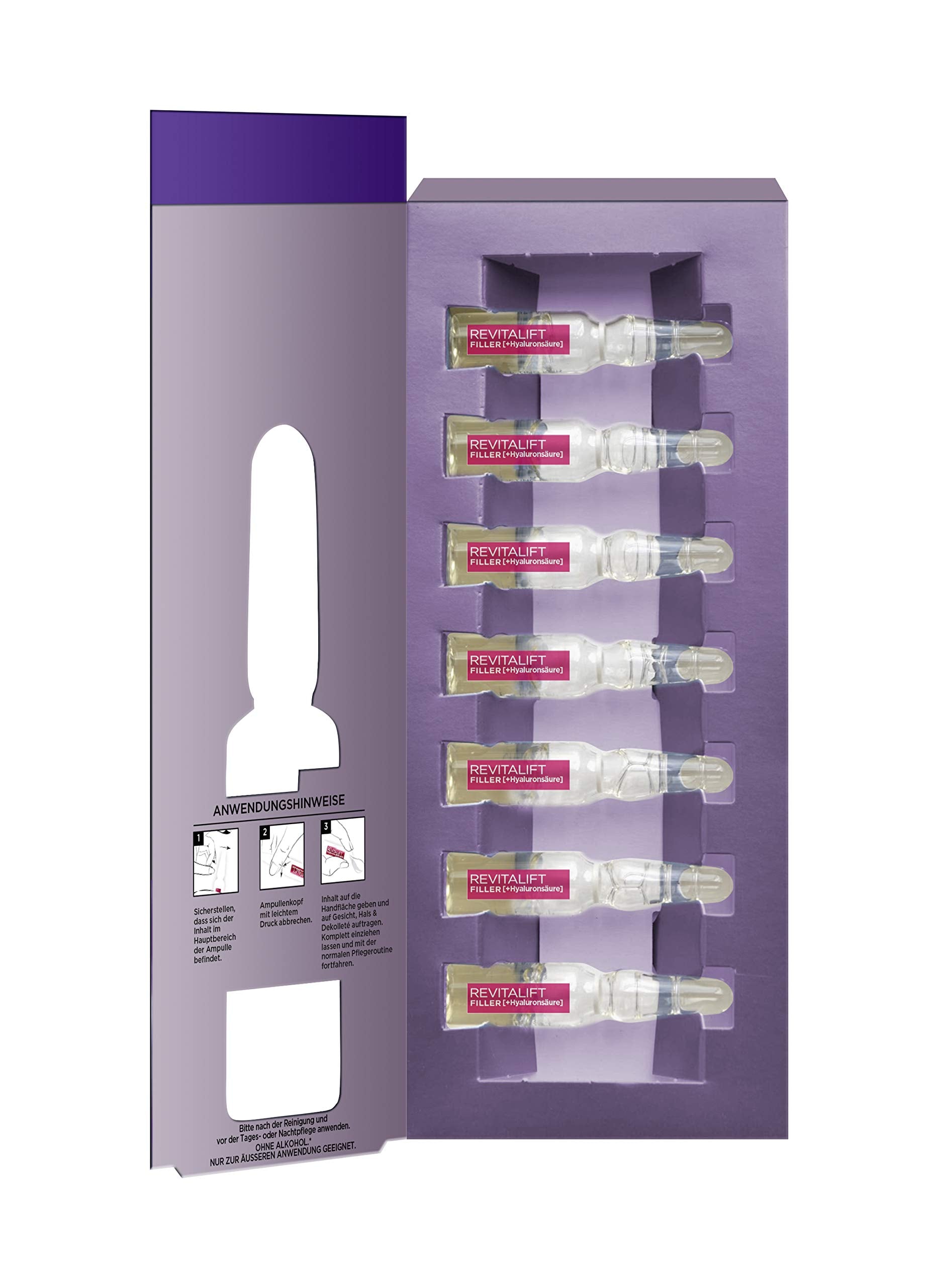 - Box contents: 1x L'Oréal Paris Revitalift filler anti-ageing treatment, 7 single dose ampoules of 1.3 ml