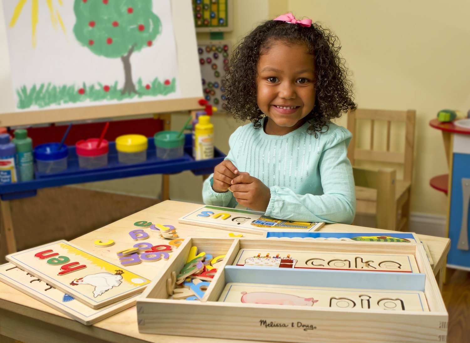 - SEE-AND-SPELL DEVELOPMENTAL TOY: The Melissa and Doug See and Spell learning toy is a 50+ piece colorful wooden puzzle with easy-to-handle letters that fit into 8 two-sided cutout boards to spell 3-and 4-letter words