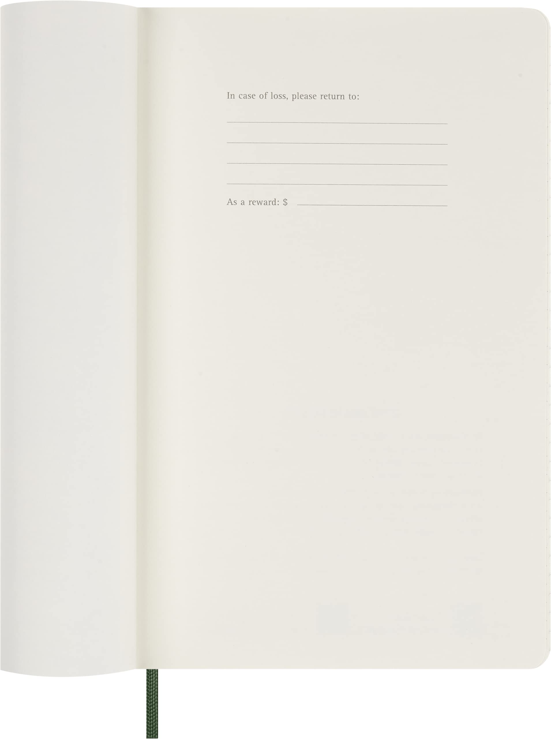 - The diary features the iconic rounded corners, an elastic closure, a ribbon bookmark and a "in case of loss" notice on the cover. Acid-free ivory paper 70 gsm