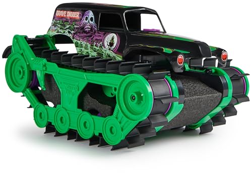- CONQUER ANY TERRAIN: Featuring a unique design with all-terrain tank treads, the Grave Digger Trax travels and floats through water with ease. Drive on land and keep on going through snow, mud, rocks and more