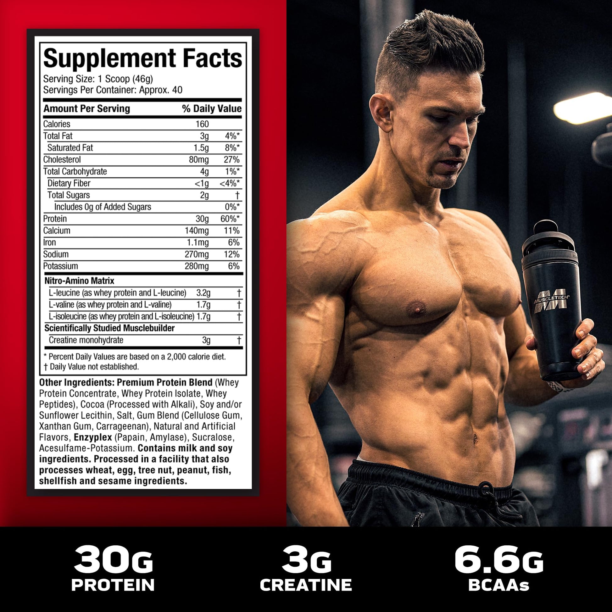 - MUSCLETECH NITRO-TECH – MuscleTech brings you Nitro-Tech, the most powerful protein formula ever developed - each serving contains 30 g of premium whey protein, 6.8 g of BCAA and 5g of glutamine and precursor (naturally-occurring)