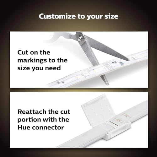 - Colourful. Flexible. Powerful - With a simple and easy setup, start adding colour under kitchen cabinets, kitchen islands, bed frames or behind your TV in no time! Shape, cut, re-use or extend your Lightstrip to any solid surface using the adhesive tape and get the flexibility you need. The leftover piece won’t go to waste: use the included connector clip to attach the strip you’ve cut off to another Lightstrip base unit