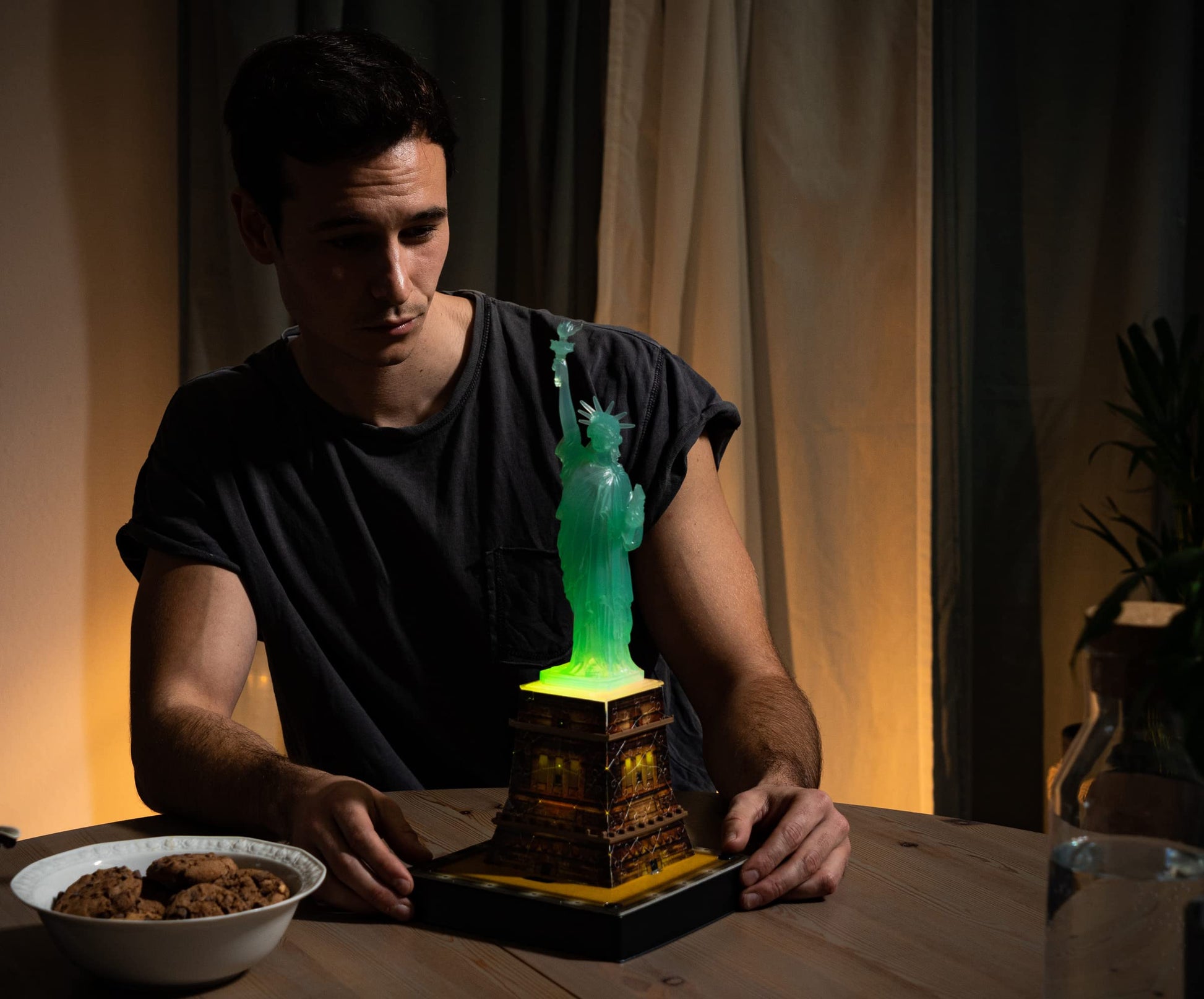- Utilising the latest 3D puzzle technology you can create this stunning 3D model of New York's Statue of Liberty Night Edition with stunning LED lighting effects. No glue required A beautiful USA Souvenir or Gift