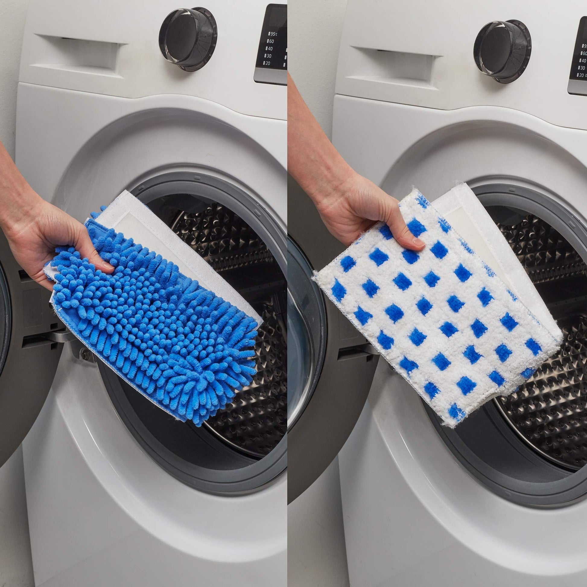 - REVERSIBLE, NO-TOUCH DESIGN: Reversible pad features a patterned side with non-scratch scrubbing squares for mopping and fluffy chenille side for floor dusting