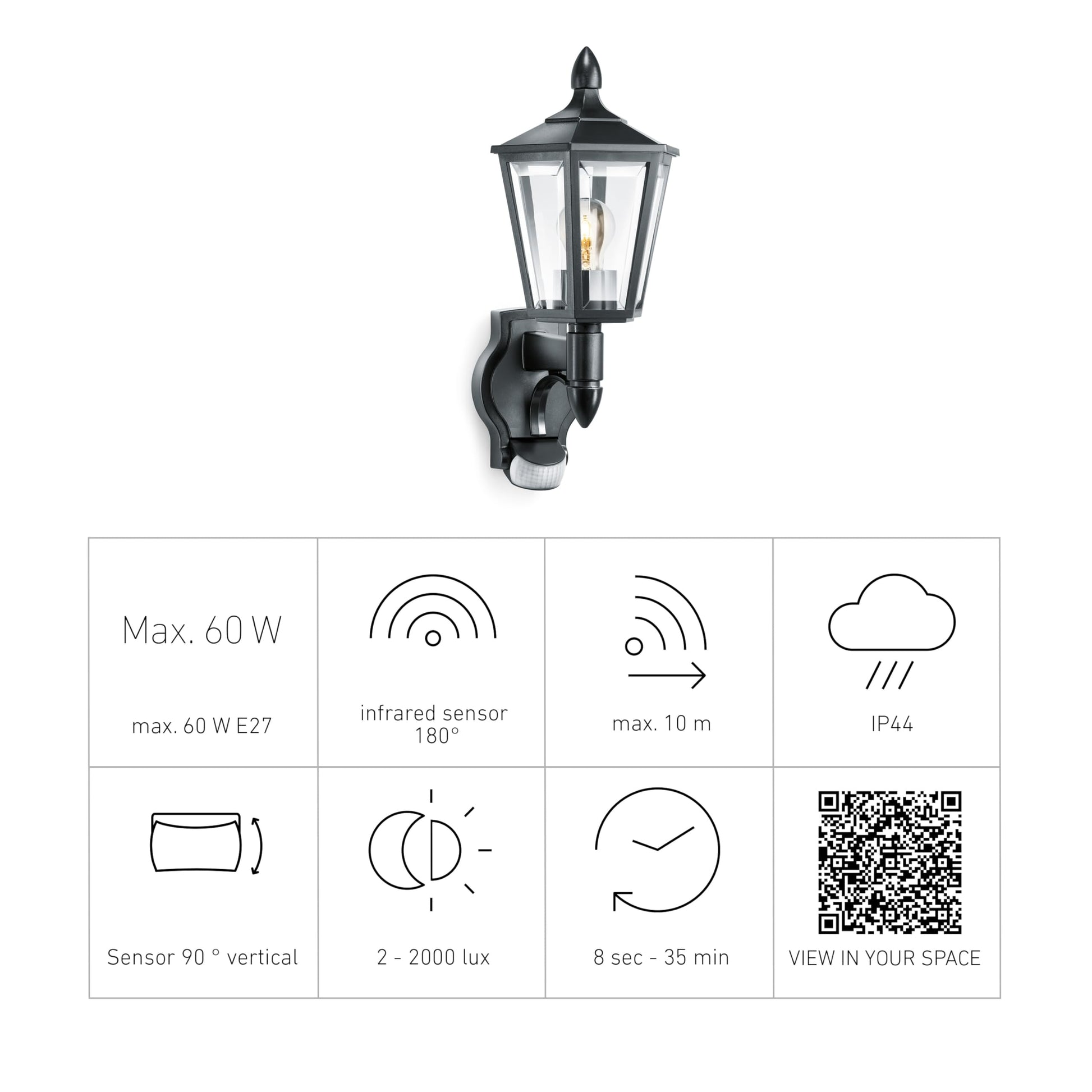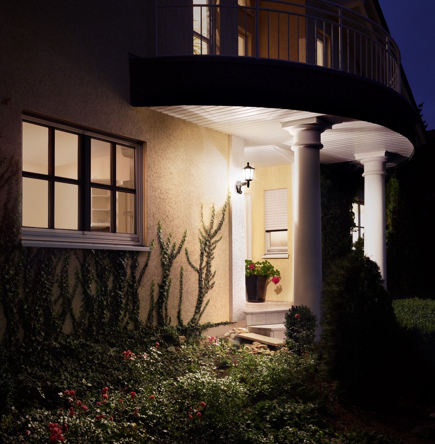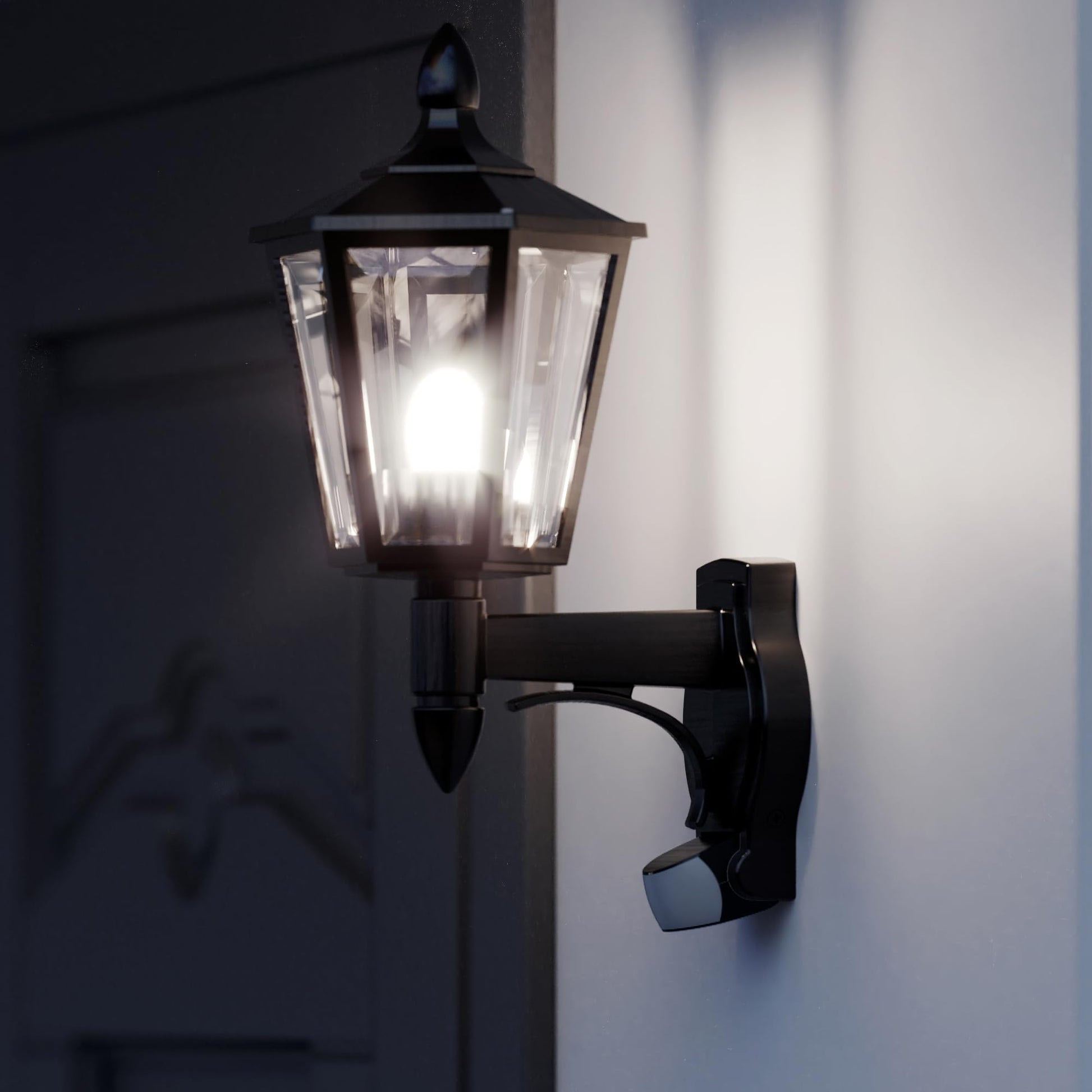 - Sensor wall lamp made of high-quality, UV-resistant plastic with nostalgic details