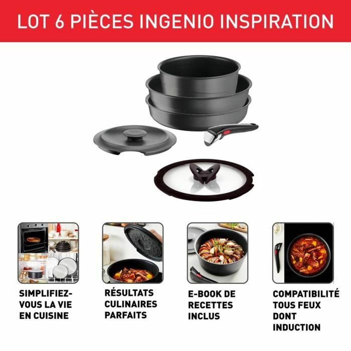 Tefal Ingenio Set of 6 Induction, Cast Aluminium, Frying Pan, Wok + Glass Lid, Casserole + Cast Iron Lid, Removable Handle, Dishwasher Safe, Inspiration L867S604