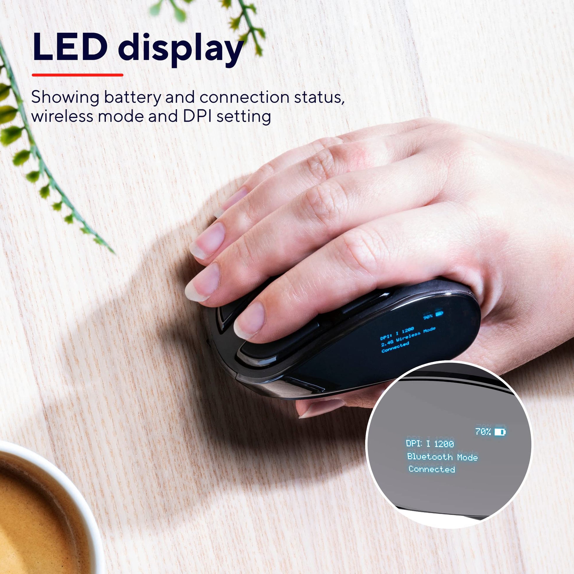 - LED DISPLAY – Shows button functionality, DPI, connection status, and remaining battery life